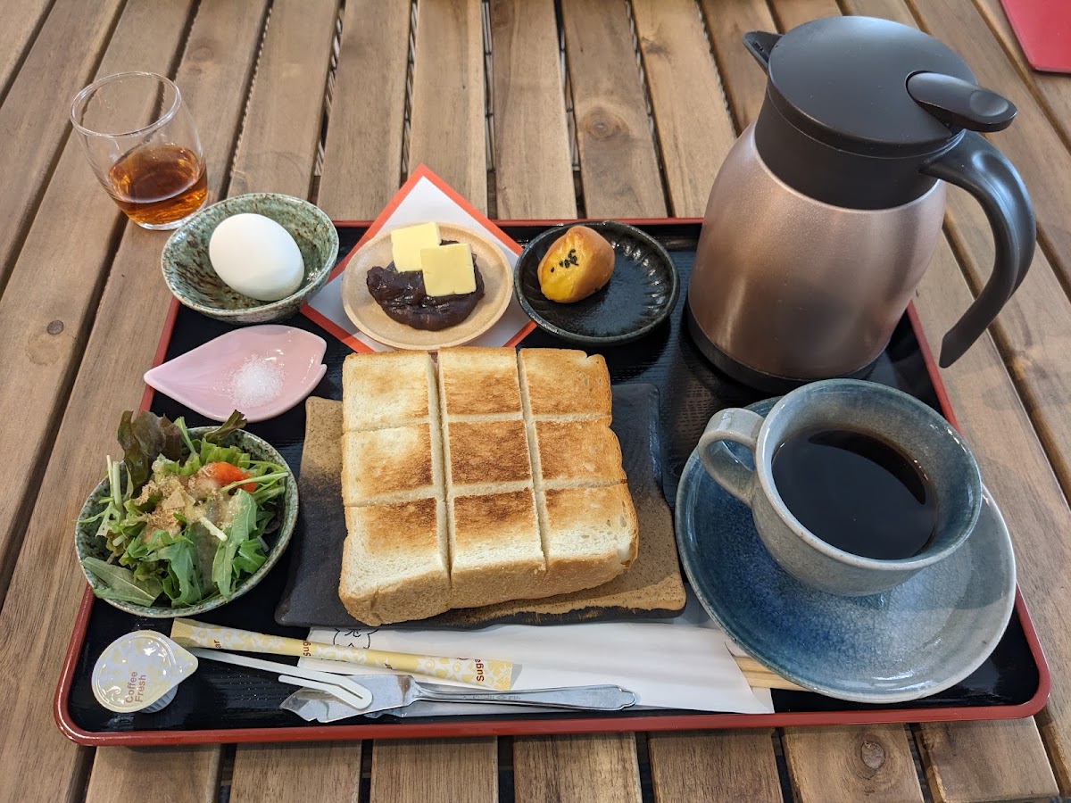 Those seeking a more casual respite can enjoy the delightful あんバタートースト (an butter toast), a thick slice of golden toast topped with sweet red bean paste and creamy butter, a truly comforting treat with a delicate balance of flavors.